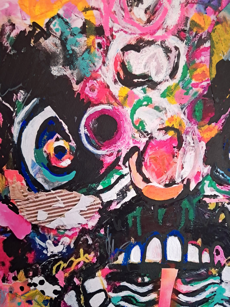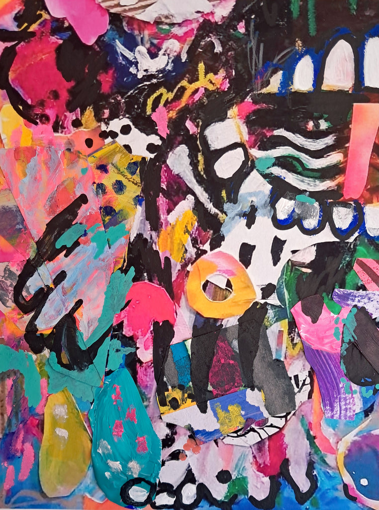 This print has been HAND EMBELISHED with collage, Japanese Washi Paper, Oil Stick and acrylic Paint to become a one of a kind original piece.